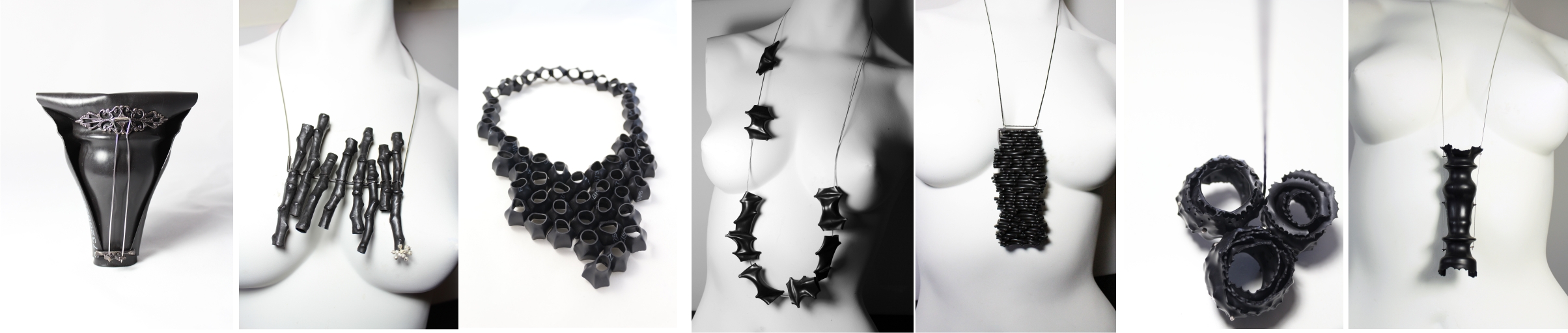 THINLY VEILED 2015 – Rubber, sterling silver (oxidized), stainless steel or cord